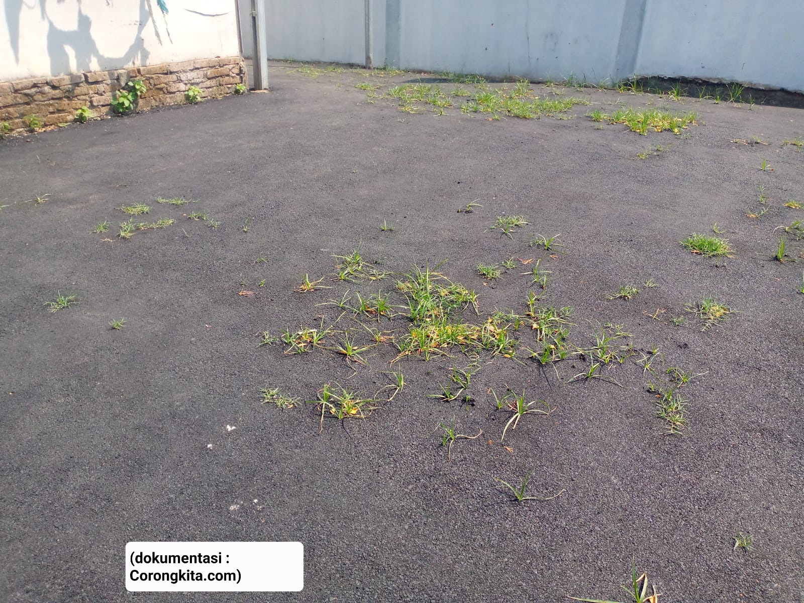 Dari pantauan awak media ada beberapa tempat yang dibagian atas hotmik tersebut tumbuhnya rumput.
