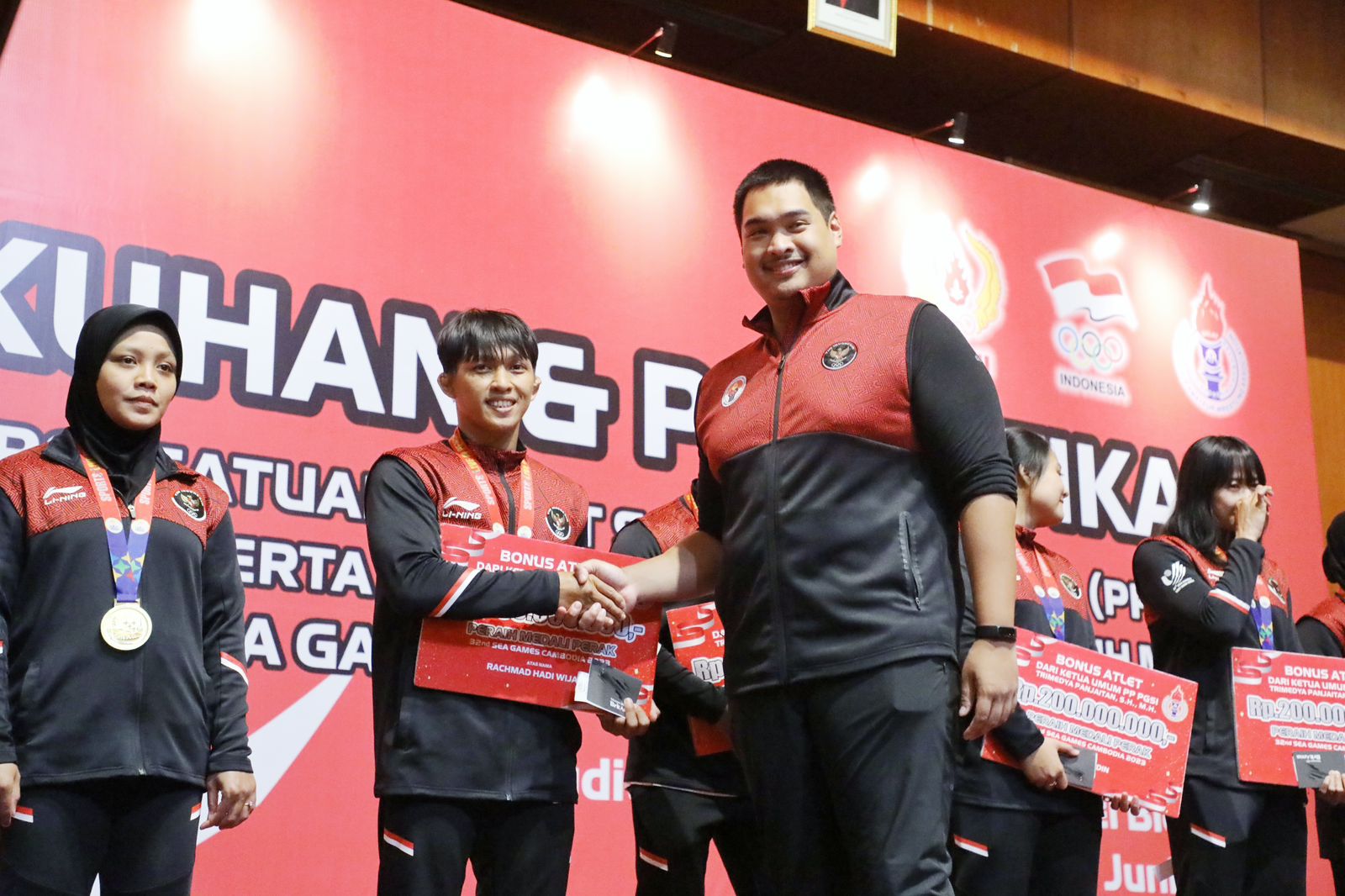 “Kita sampaikan supaya bonus yang diberikan itu agar digunakan dengan sebaik-baiknya, jangan digunakan untuk hal-hal yang tidak perlu. Gunakan bonus untuk yang bermanfaat. Tadi Menpora juga sudah sampaikan pelatihan keuangan, itu adalah hal yang sangat bagus dan semoga bisa bermanfaat untuk atlet,” pungkasnya.