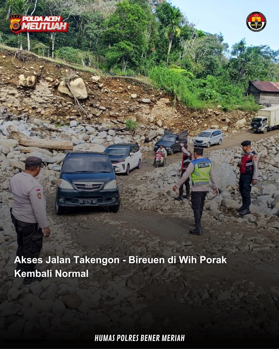 REDELONG || Corongkita.com – Akses jalan alternatif yang menghubungkan Takengon–Bireuen di Kampung Wih Porak, Kecamatan Pintu Rime Gayo (PRG), Kabupaten Bener Meriah, yang sebelumnya sempat lumpuh total akibat banjir dan tingginya curah hujan, kini telah kembali normal.
