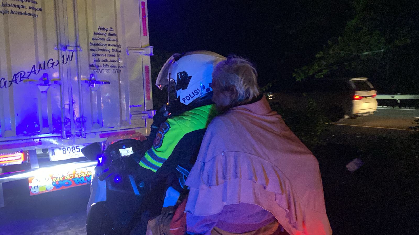 Saat melintas di KM 162, petugas dikejutkan dengan sosok lansia yang berjalan kaki menyusuri bahu jalan di tengah lalu lalang kendaraan yang melaju kencang. Menyadari bahaya yang mengancam keselamatan lansia tersebut, petugas segera menghentikan kendaraan dinas dan melakukan evakuasi secara humanis ke Motor patroli.