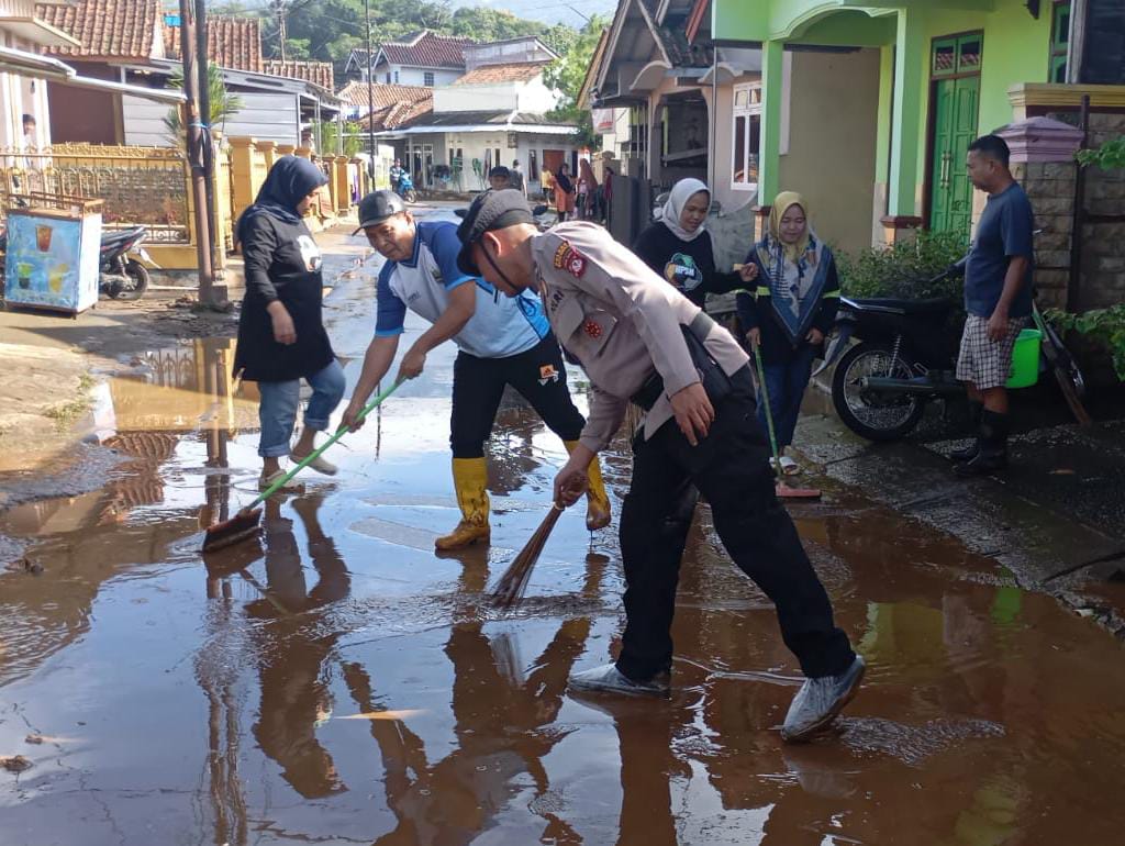 Pembersihan dilakukan dengan menyasar pengangkatan lumpur, sampah, serta sisa material banjir yang menutupi fasilitas umum, lingkungan permukiman warga, hingga halaman sekolah. Seluruh kegiatan berlangsung dengan semangat kebersamaan, kekompakan, dan gotong royong antara personel Polsek Cikijing dan masyarakat setempat.