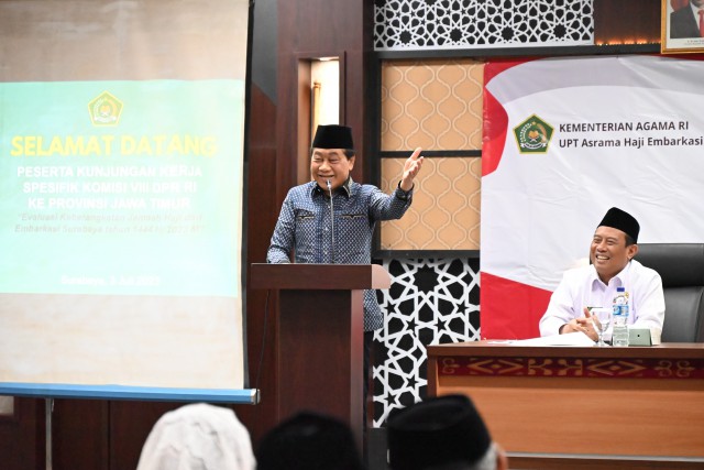 Surabaya || Corongkita.com – Komisi VIII DPR RI melakukan Kunjungan Kerja Spesifik (Kunspik) dalam rangka evaluasi pemberangkatan jemaah haji tahun 1444 H/2023 M di Kantor Wilayah Kementerian Agama Provinsi Jawa Timur dan Embarkasi Surabaya. Diketahui, embarkasi Surabaya telah memberangkatkan sebanyak 38.360 jemaah haji dan petugas haji dari tiga provinsi, yakni Jawa Timur, Bali dan Nusa Tenggara Timur (NTT).