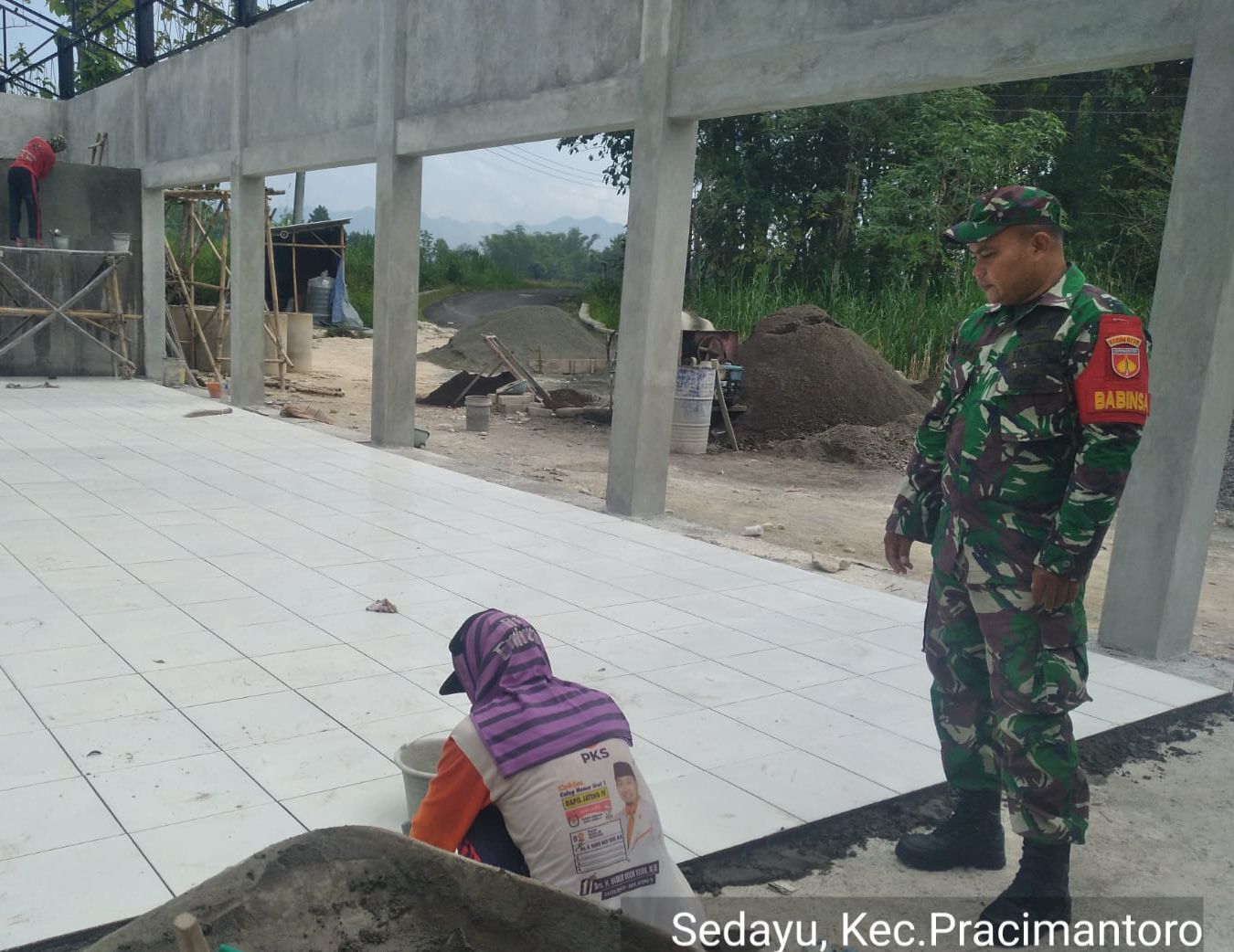 Kegiatan tersebut turut didampingi oleh Koptu Bandri Babinsa 13/Pracimantoro Kodim 0727/Wonogiri, yang hadir langsung untuk memberikan semangat sekaligus memastikan proses pembangunan berjalan dengan lancar dan sesuai rencana. Pemasangan keramik ini merupakan salah satu tahapan penting dalam penyelesaian pembangunan gedung KDKMP yang nantinya akan dimanfaatkan oleh masyarakat.