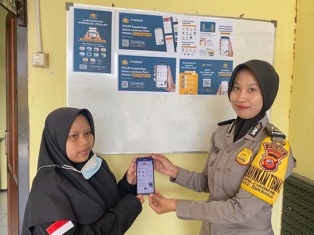 Majalengka || Corongkita.com – Briptu Inten Rihhadatul ‘Aisy, S.H, seorang Polwan Bhabinkamtibmas Desa Cikoneng dari Polsek Sukahaji Polres Majalengka, Polda Jabar, melaksanakan kegiatan sosialisasi Aplikasi Super Apps Presisi Polri. Kegiatan sosialisasi ini bertujuan untuk mendukung program Kapolri dalam Quick Wins Presisi Polri, yaitu optimalisasi pelayanan publik.