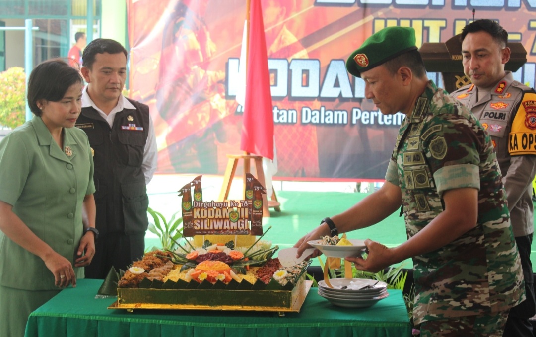 Majalengka || Corongkita.com – Dandim 0617/Majalengka Letkol Inf Dudy Pilianto, S.Pd., M.I.P beserta Forkopimda Majalengka melaksanakan kegiatan dalam rangka syukuran HUT Kodam III/Siliwangi Ke-78 Tahun 2024, bertempat di Lapangan Upacara Makodim setempat, Jl. KH Abdul Halim No. 403 Kelurahan Tonjong, Kecamatan/Kabupaten Majalengka, Selasa (21/5/2024). Dengan tema “Militan Dalam Pertempuran Terdepan Dalam Pembangunan”.