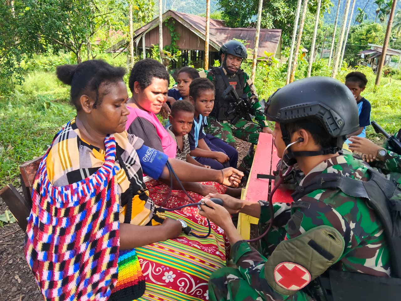 Satgas Yonif 410 Alugoro, Pos Teluk Etna, kembali menunjukkan kepedulian mereka terhadap masyarakat Distrik Teluk Etna, Papua Barat, dengan melaksanakan kegiatan Pelayanan Kesehatan (Yankes). Dalam kegiatan ini, tim medis Satgas memberikan pemeriksaan kesehatan gratis kepada warga, mulai dari pengukuran tensi, hingga pengobatan umum.