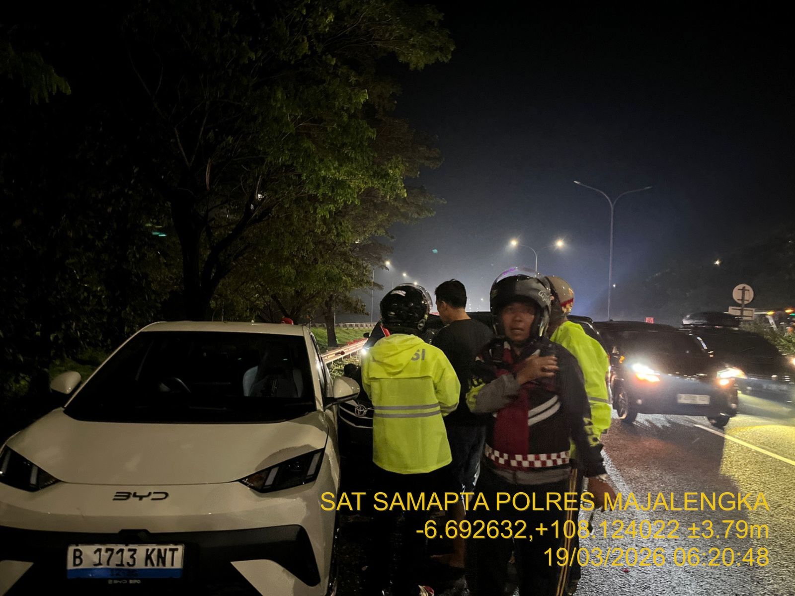 Majalengka || Corongkita.com – Kesigapan personel kepolisian kembali ditunjukkan dalam penanganan darurat di jalur mudik. Pada Kamis dini hari (19/3/2026), jajaran Polres Majalengka melakukan evakuasi cepat terhadap korban kecelakaan lalu lintas yang melibatkan dua unit kendaraan roda empat di ruas Tol Cipali KM 152 Jalur B.
