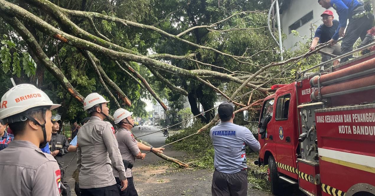 Gerak Cepat Tim SAR Sat Brimob Polda Jabar Tangani Pohon Tumbang di Bandung, Akses Jalan Kembali Normal