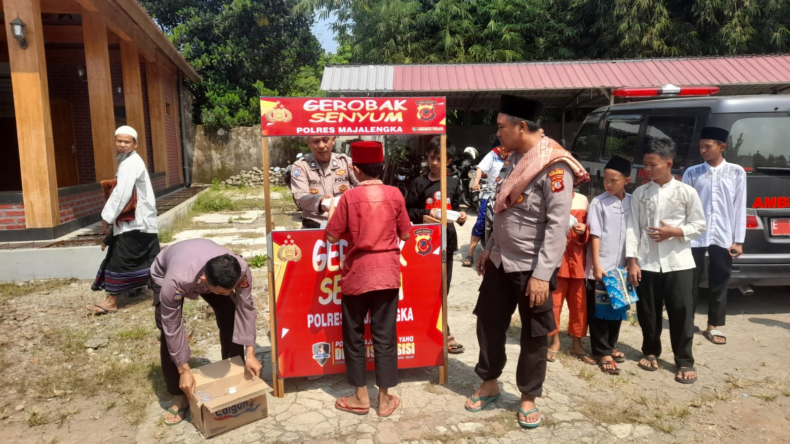 Kapolres Majalengka AKBP Indra Novianto, S.I.K mengatakan, pembagian makanan gratis bagi jamaah masjid tersebut merupakan program gerobak senyum Polres Majalengka yang dilakukan setiap hari Jum’at.