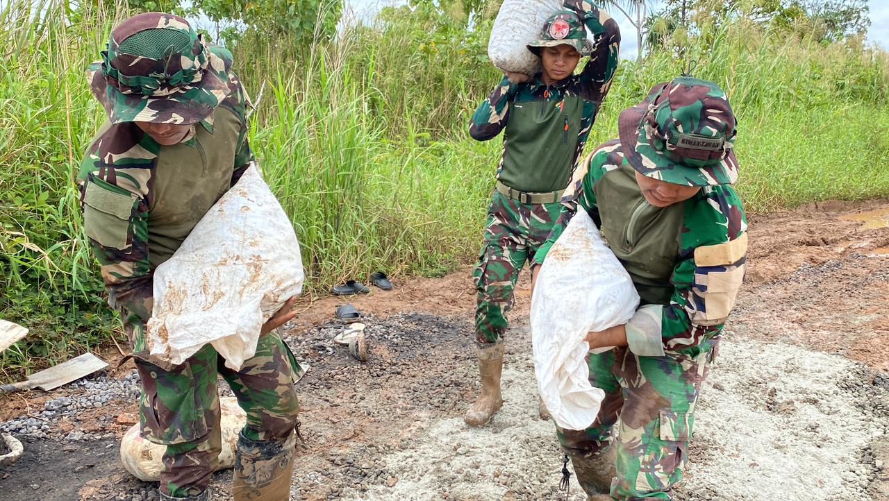 Melihat kondisi tersebut, personel Satgas Yonif 123/RJW berinisiatif melakukan perbaikan sementara melalui gotong royong bersama warga. Upaya ini dilakukan sebagai bentuk kepedulian terhadap kelancaran aktivitas masyarakat sekaligus untuk mengurangi hambatan distribusi logistik yang selama ini terganggu.