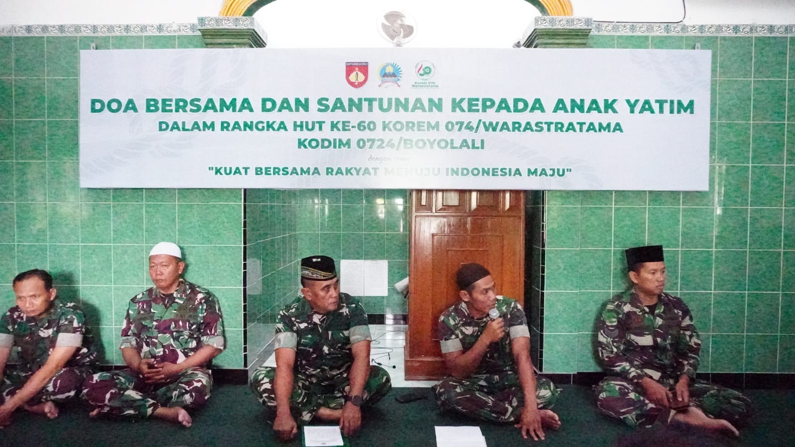 Boyolali || Corongkita.com – Suasana khusyuk dan penuh kehangatan menyelimuti Masjid Ar-Rahman Makodim 0724/Boyolali, Senin (27/04/26). Dalam rangka memperingati HUT ke-60 Korem 074/Warastratama, keluarga besar Kodim 0724/Boyolali menggelar doa bersama yang dirangkai dengan bakti sosial berupa santunan kepada anak-anak yatim. Kegiatan ini menjadi momen refleksi sekaligus penguatan nilai kemanusiaan di tengah padatnya tugas pengabdian prajurit.