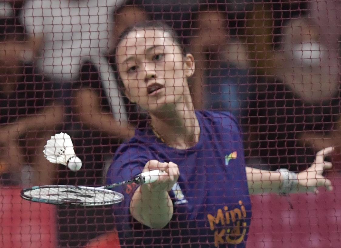 Pertandingan semifinal bulu tangkis berlangsung di GOR PBSI Sumut, Deli Serdang, Rabu (18/9). Salsabila mengandaskan lawannya dengan skor 21-19 dan 21-14.