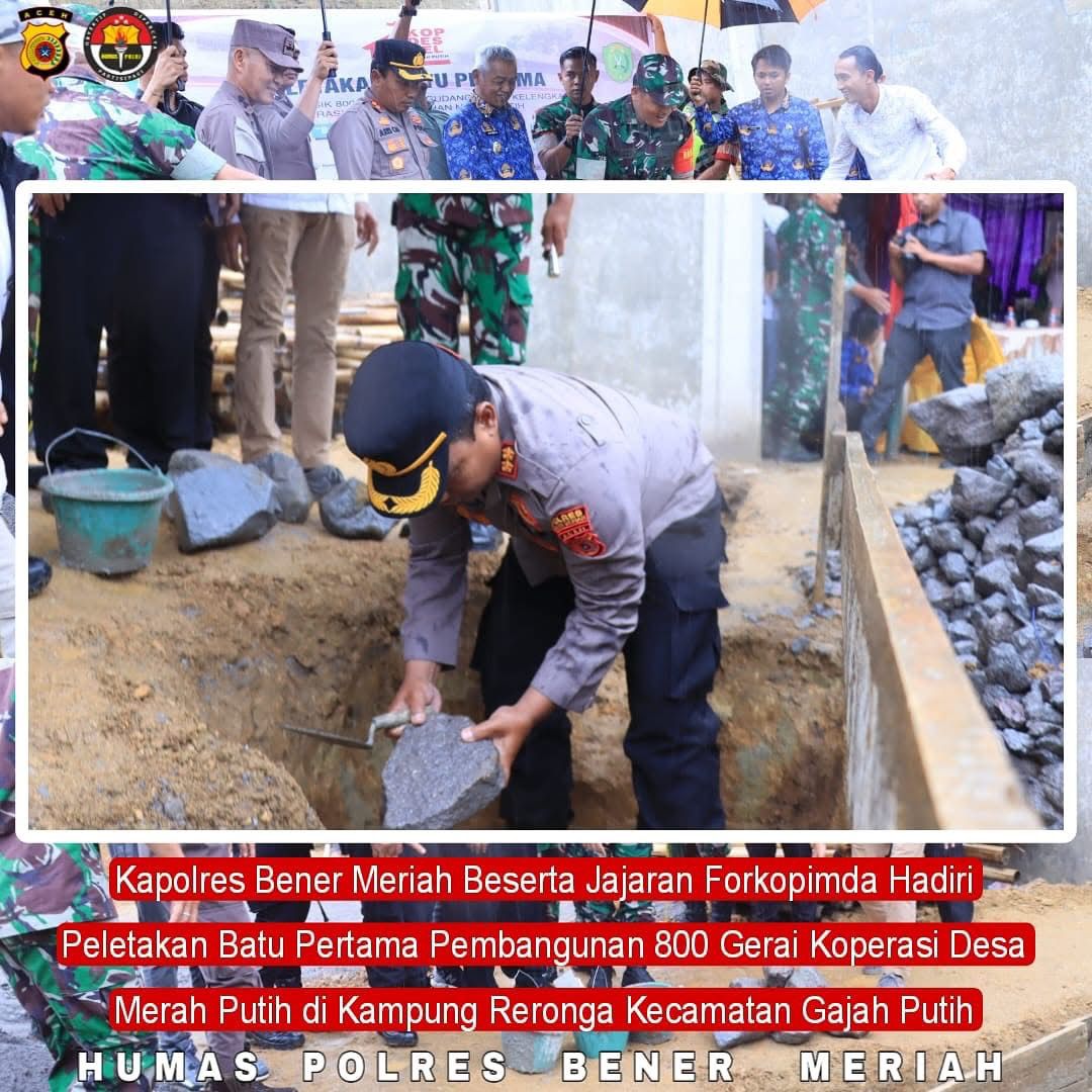 Kapolres Bener Meriah AKBP Aris Cai Dwi Susanto menyampaikan bahwa pembangunan Koperasi Desa Merah Putih diharapkan dapat menjadi wadah bagi masyarakat untuk meningkatkan kesejahteraan ekonomi secara mandiri dan berkelanjutan.