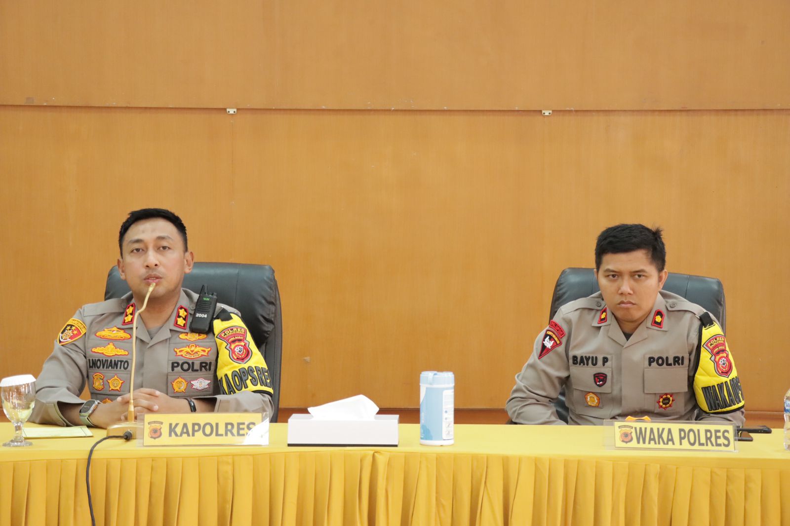 Majalengka || Corongkita.com – Kapolres Majalengka AKBP Indra Novianto, S.I.K., M.Si. didampingi Wakapolres Majalengka Kompol Bayu Purdantono, S.I.K., M.I.K. mengumpulkan PJU Polres Majalengka dan para Kapolsek Jajaran yang bertempat di Aula Kanya Wasistha Polres Majalengka, Selasa (18/7/2023).
