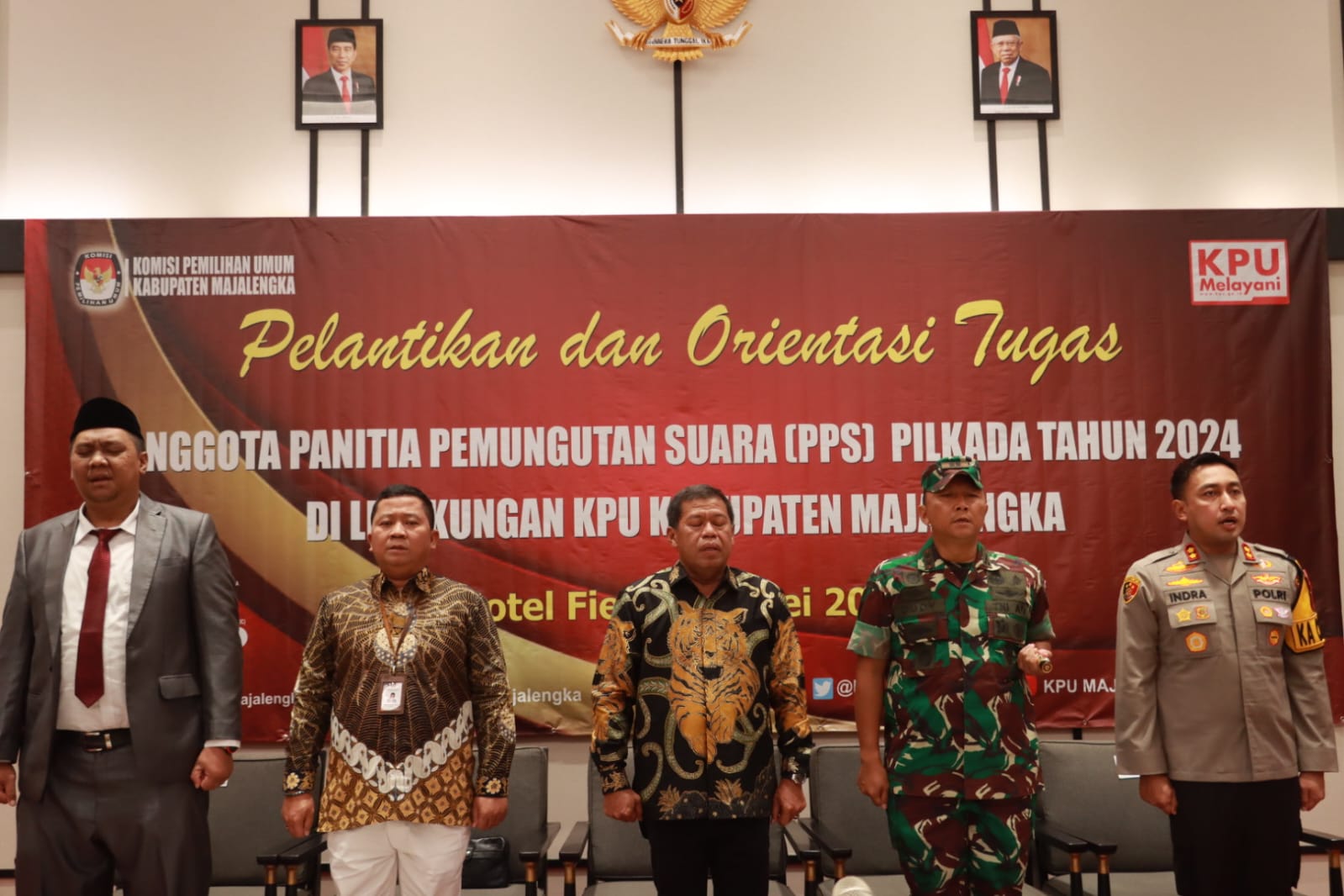 Majalengka || Corongkita.com – Kapolres Majalengka, Polda Jabar, AKBP Indra Novianto, S.I.K., M.Si., CPHR., menghadiri kegiatan pelantikan dan orientasi tugas anggota Panitia Pemungutan Suara (PPS) terpilih pada Pilkada Tahun 2024 di lingkungan KPU Kabupaten Majalengka. Acara tersebut berlangsung di Fieris Hotel Kertajati, Kabupaten Majalengka, pada Minggu (26/5/2024).