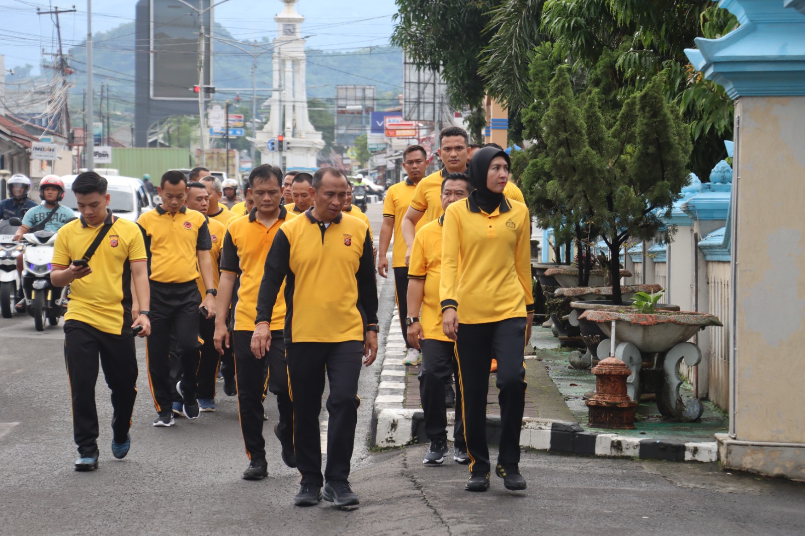 Kapolres Majalengka Laksanakan Patroli Jalan Kaki Usai Senam Pagi, Perkuat Kesehatan dan Kedekatan dengan Warga