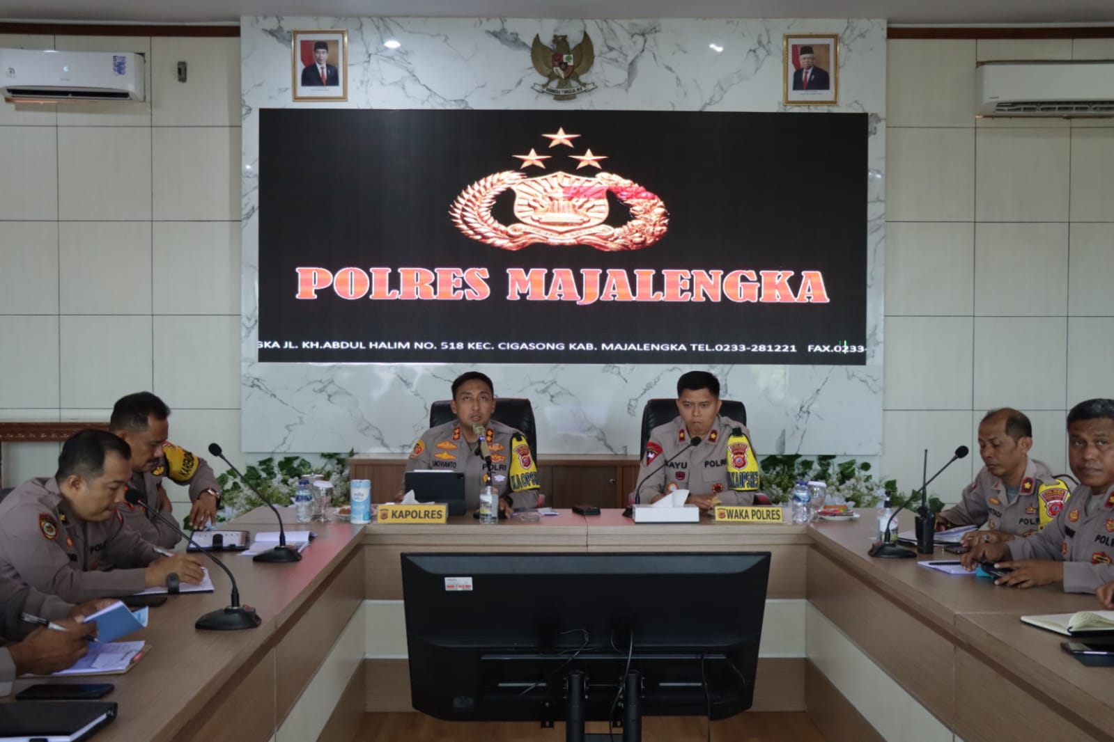 Majalengka || Corongkita.com – Kapolres Majalengka AKBP Indra Novianto, S.I.K., M.Si., didampingi Wakapolres Majalengka KOMPOL Bayu Purdantono,S.I.K.,M.I.K memimpin rapat Anev mingguan terkait Kamtibmas di wilayah hukum Polres Majalengka, senin (24/7/2023).