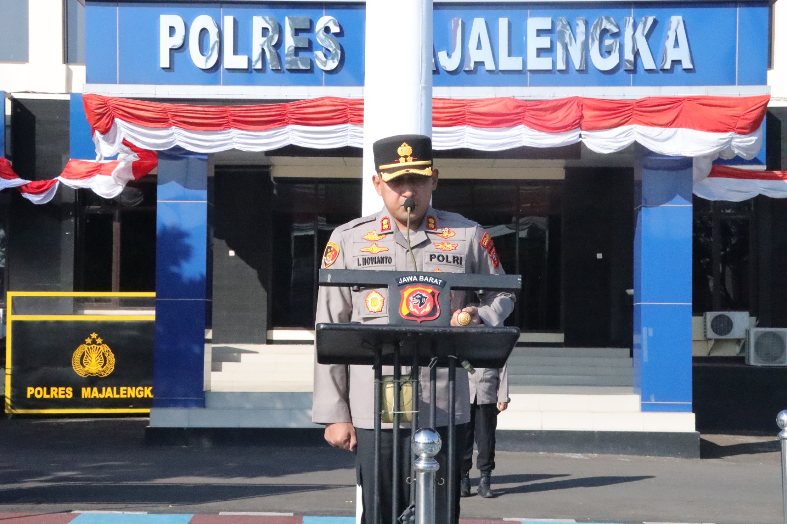 Dalam apel tersebut, Kapolres Majalengka AKBP Indra Novianto, S.I.K., M.Si. mengucapkan selamat datang kepada seluruh Bintara Remaja Lulusan Diktukba Polri Gelombang I T.A. 2023 yang ditempatkan di Polres Majalengka.