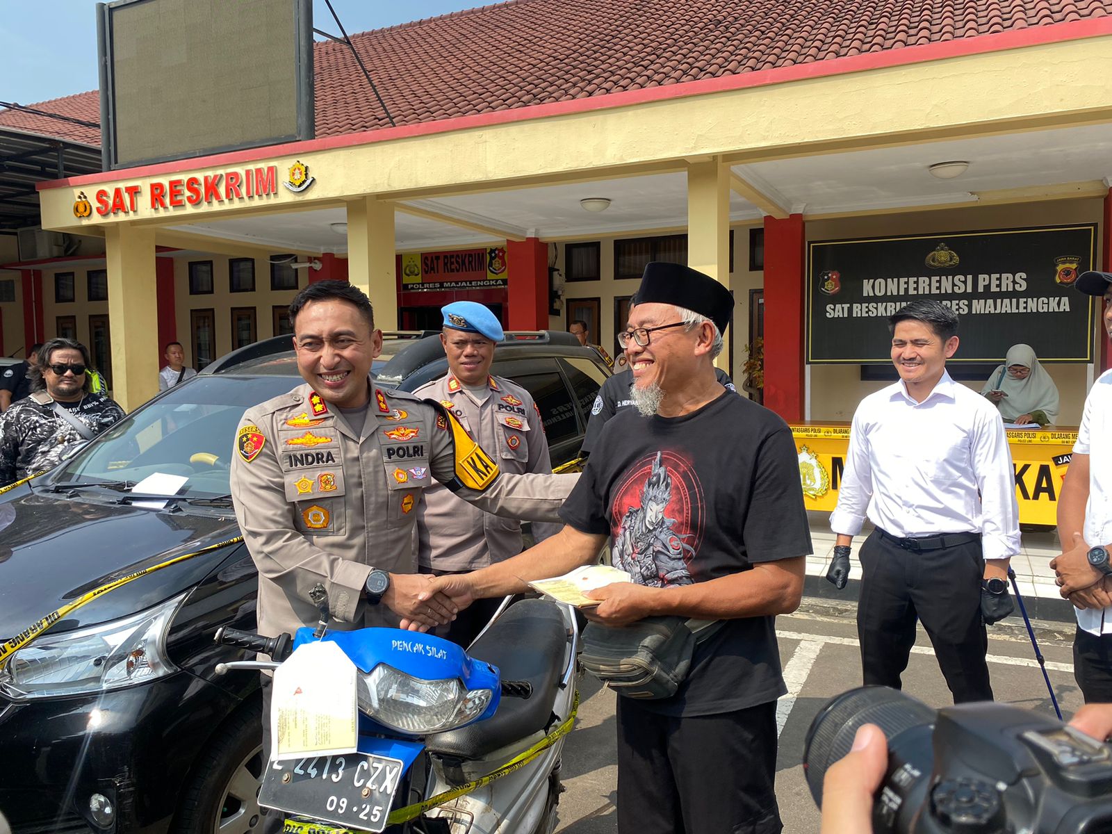 Dalam kesempatan tersebut, Kapolres Majalengka menyerahkan langsung sepeda motor merk Suzuki Smash dengan nomor polisi Z 3413 CZX berwarna biru silver kepada pemiliknya, Dedin Burhanudin (56), seorang warga Desa Cisetu, Kecamatan Rajagaluh, Kabupaten Majalengka. Motor tersebut diketahui dicuri pada Selasa, 16 Januari 2024, sekitar pukul 02.00 WIB dari halaman rumah korban yang tidak berpagar di Dusun Mayasari, Rt. 002 Rw. 003, Desa Cisetu,Kecamatan Rajagaluh,Kabupaten Majalengka.