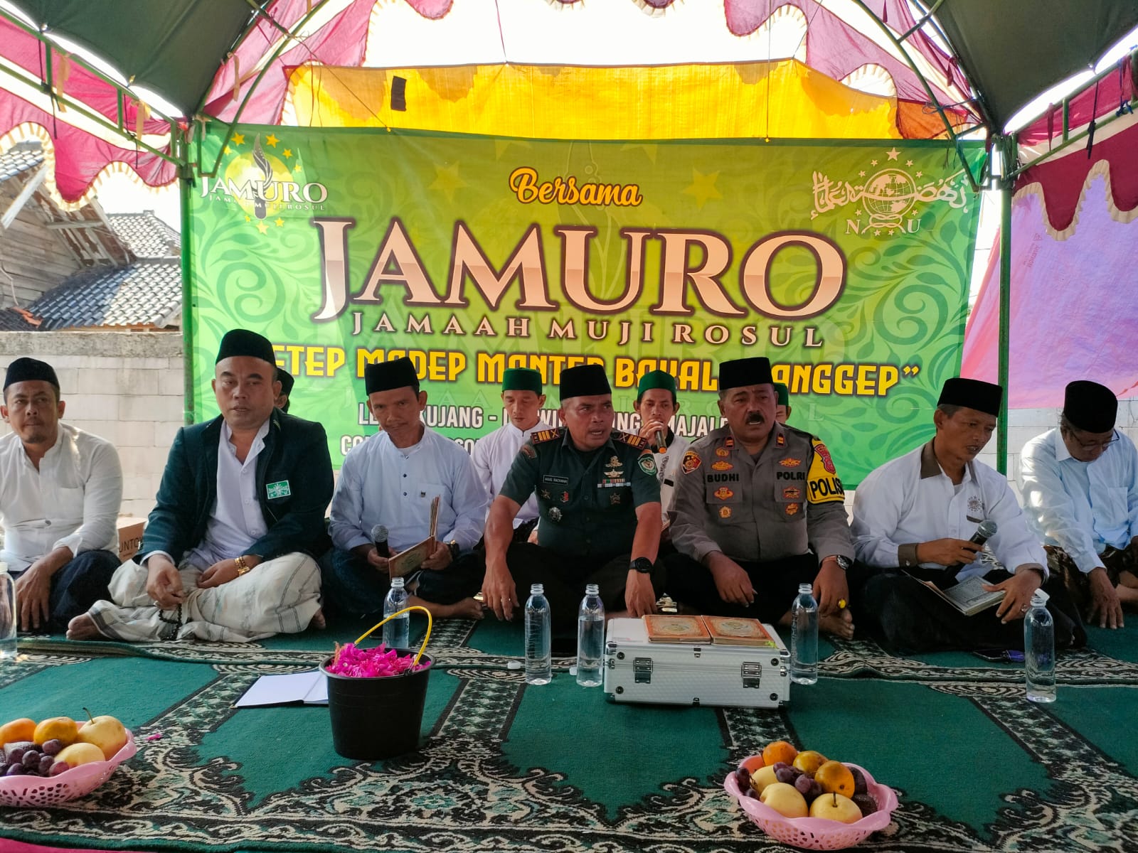 Kapolsek Leuwimunding dan Danramil 1710 Leuwimunding Hadiri Acara Maulid Nabi Bersama JAMURO di Desa Leuwikujang