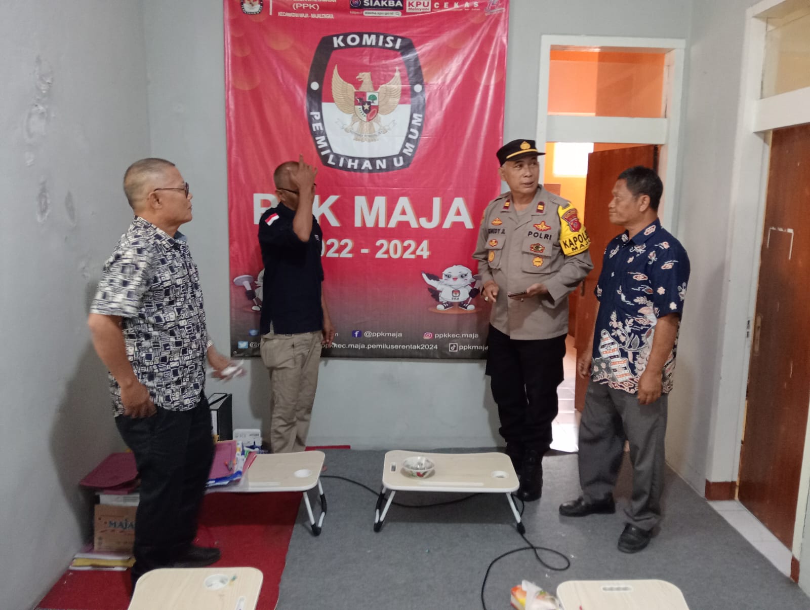 Dalam patroli tersebut, Kapolsek Maja bersama jajarannya mengunjungi kantor PPK dan Panwascam di wilayah Kecamatan Maja. Tujuan utamanya adalah memastikan bahwa kantor-kantor tersebut beroperasi dengan baik dan bahwa seluruh proses pemilu berjalan sesuai rencana. Hal ini melibatkan koordinasi antara pihak kepolisian dengan pihak penyelenggara pemilu.