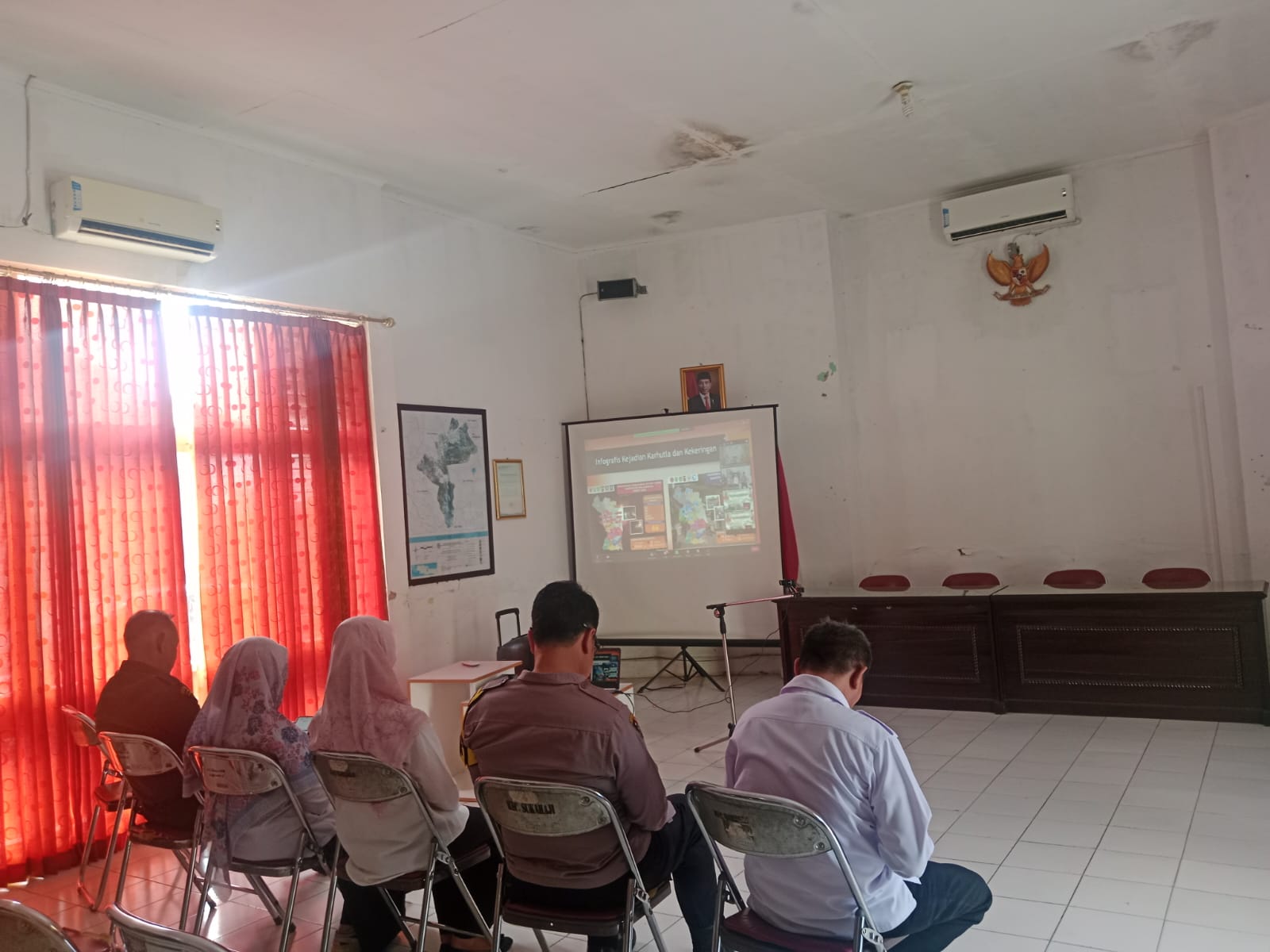 Kegiatan ini digelar bersama Fokopimcam Sukahaji di aula Kecamatan Sukahaji Kabupaten Majalengka. Zoom meeting tersebut guna koordinasi sekaligus penyampaian informasi situasi terakhir terkait bencana kekeringan serta kebakaran hutan / lahan sehingga pada saat penanggulangannya terlaksana dengan baik.