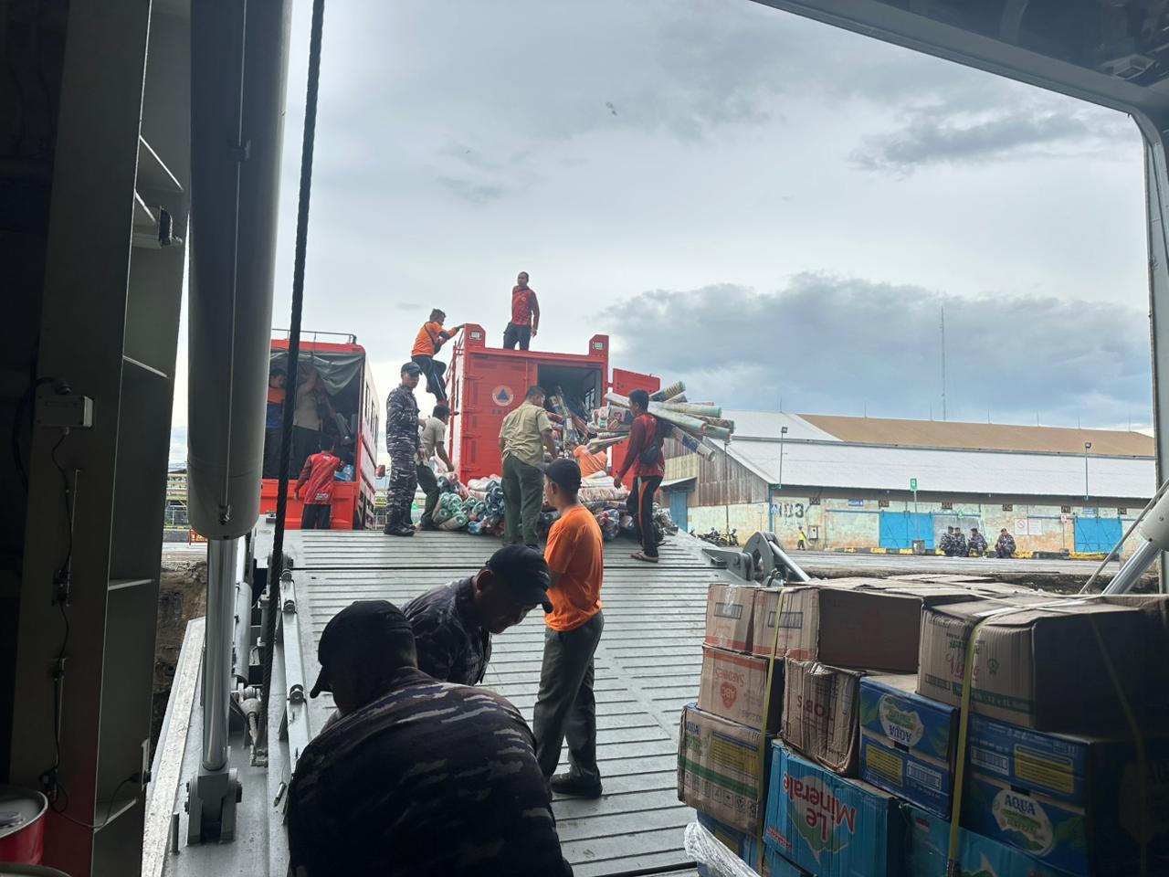 KRI Semarang-594 dengan Komandan KRI Letkol Laut (P) Agus Yunianto, membawa berbagai bantuan logistik dan material dari kementerian, lembaga, BUMN, komunitas, serta unsur TNI sebagai wujud sinergi dan kepedulian terhadap masyarakat terdampak bencana.