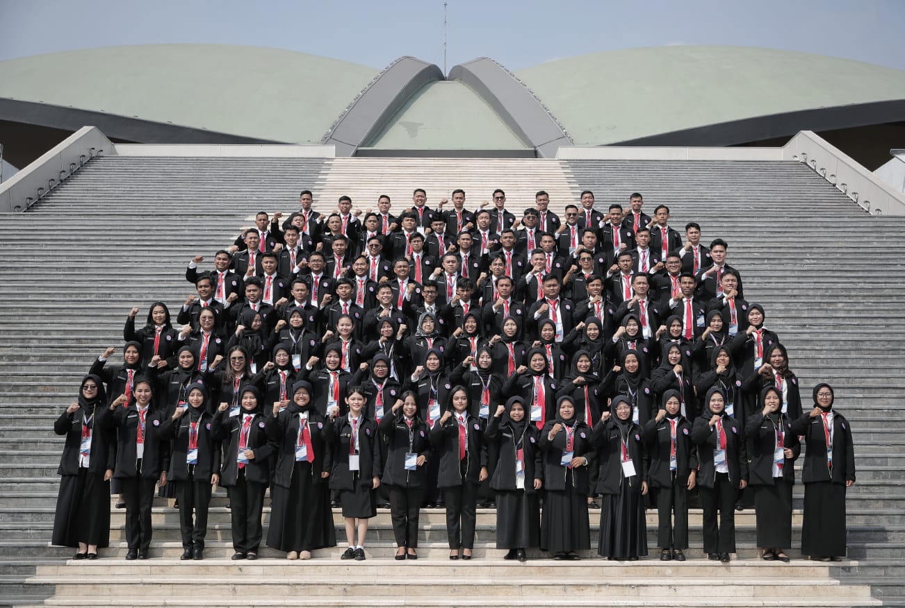 Pada agenda kunjungan ke DPR RI, sebanyak 100 peserta PKPNM Angkatan IV 2023 terlihat cukup antusias. Mereka dibekali ilmu kehumasan, melihat langsung ruang rapat paripurna di gedung Nusantara 1, dan berfoto bersama dengan latar belakang gedung DPR RI yang berbentuk kura-kura.