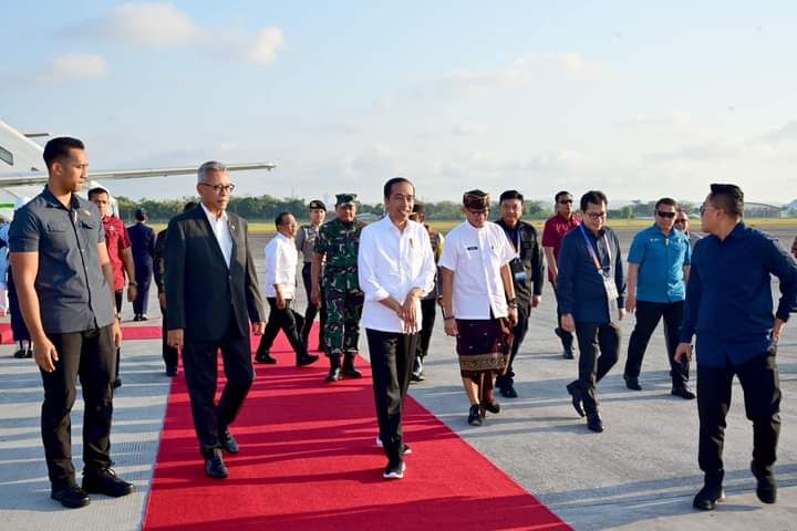 Badung || Corongkita.com – Presiden Joko Widodo melakukan kunjungan kerja ke Provinsi Bali, pada Selasa, 10 Oktober 2023. Kepala Negara tiba di Bandara Internasional I Gusti Ngurah Rai, Kabupaten Badung, sekitar pukul 17.00 WITA.