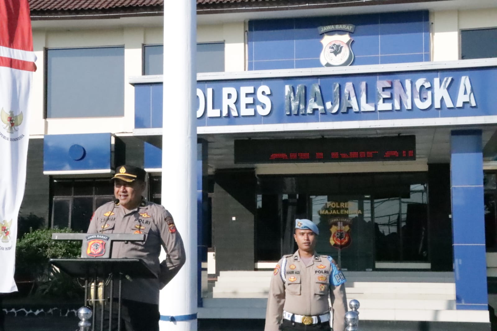 Majalengka || Corongkita.com – Mewakili Kapolres Majalengka AKBP Indra Novianto,S.I.K.,M.Si, Kabag Ren Polres Majalengka Kompol Cucu Supiar, memimpin apel pagi di Lapangan Apel Polres Majalengka hari ini Senin (17/7/2023).