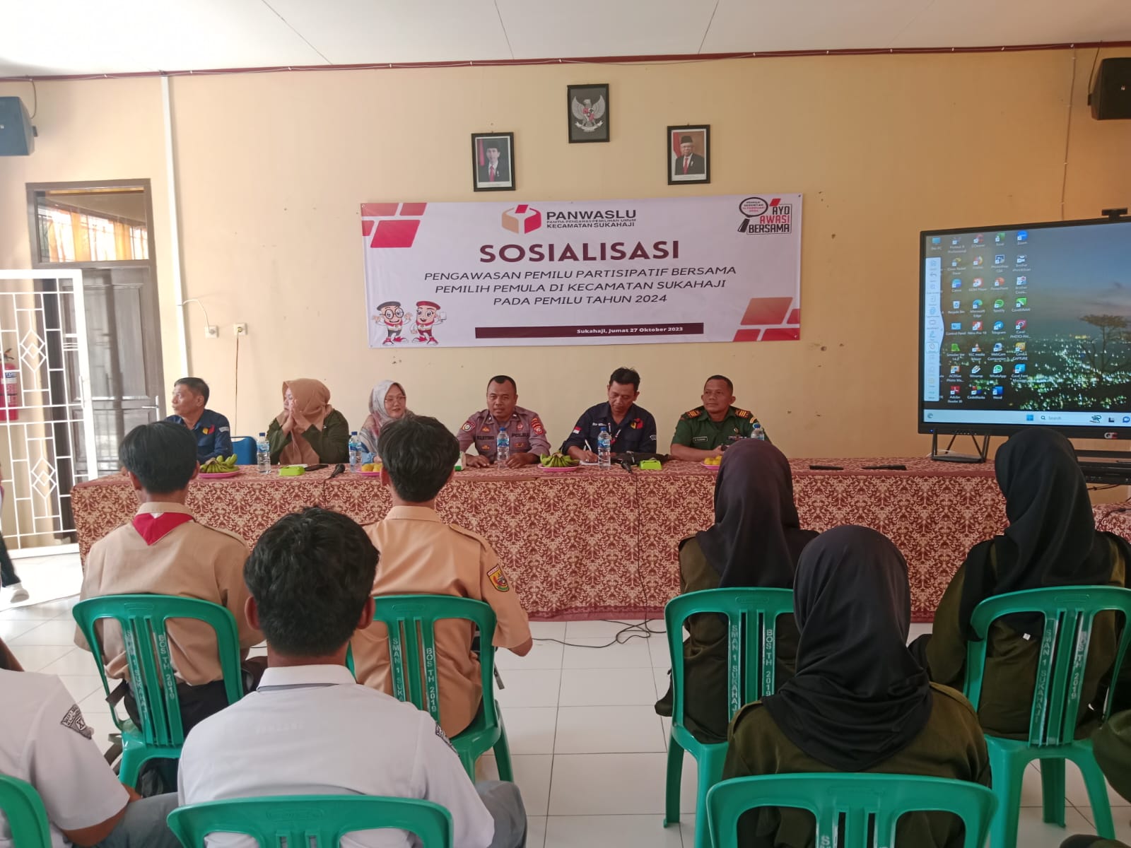 Pelaksanaan sosialisasi tersebut dibuka oleh Ketua Panwaslucam Sukahaji Sdr. Yusup Sediana dan dihadiri Camat Sukahaji diwakili Kasi Tramtib Sdr. Saja Sukmana, Danramil Sukahaji Kapten Inf. Nana Rusmana, Kapolsek Sukahaji diwakili Kanit Binmas Aipda Karyono, Kanit Intelkam Polsek Sukahaji Aipda Yanuar, Anggota Panwascam Kecamatan Sukahaji, Siswa/i SMA N 1 SUKAHAJI DAN SMK MUHAMMADIYAH Palabuan.