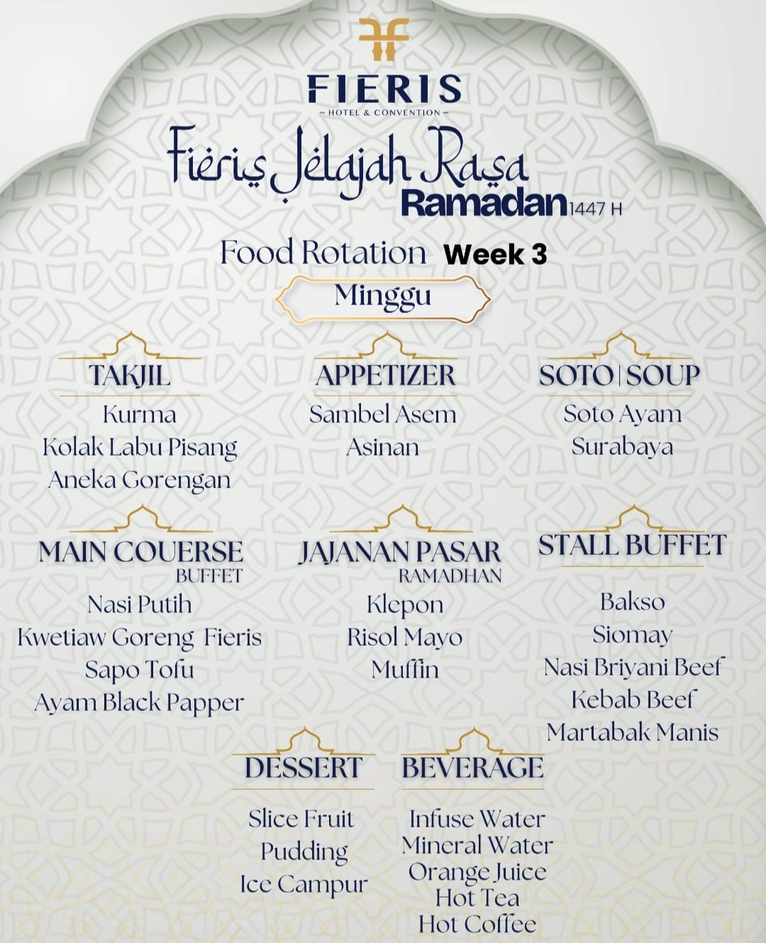 Bulan suci Ramadan 2026, Fieris Hotel Kertajati yang beralamat di Jl. Kertajati-Kadipaten Kabupaten Majalengka, menghadirkan program berbuka puasa spesial bertajuk “Fieris Jelajah Rasa Ramadan 1447H” sebuah paket All You Can Eat yang memadukan kelezatan kuliner, kebersamaan, dan kepedulian sosial dalam satu pengalaman bermakna. Lebih dari sekadar menikmati hidangan, program ini mengajak para tamu untuk menjalani ibadah dalam suasana Ramadan yang hangat dan penuh keberkahan.