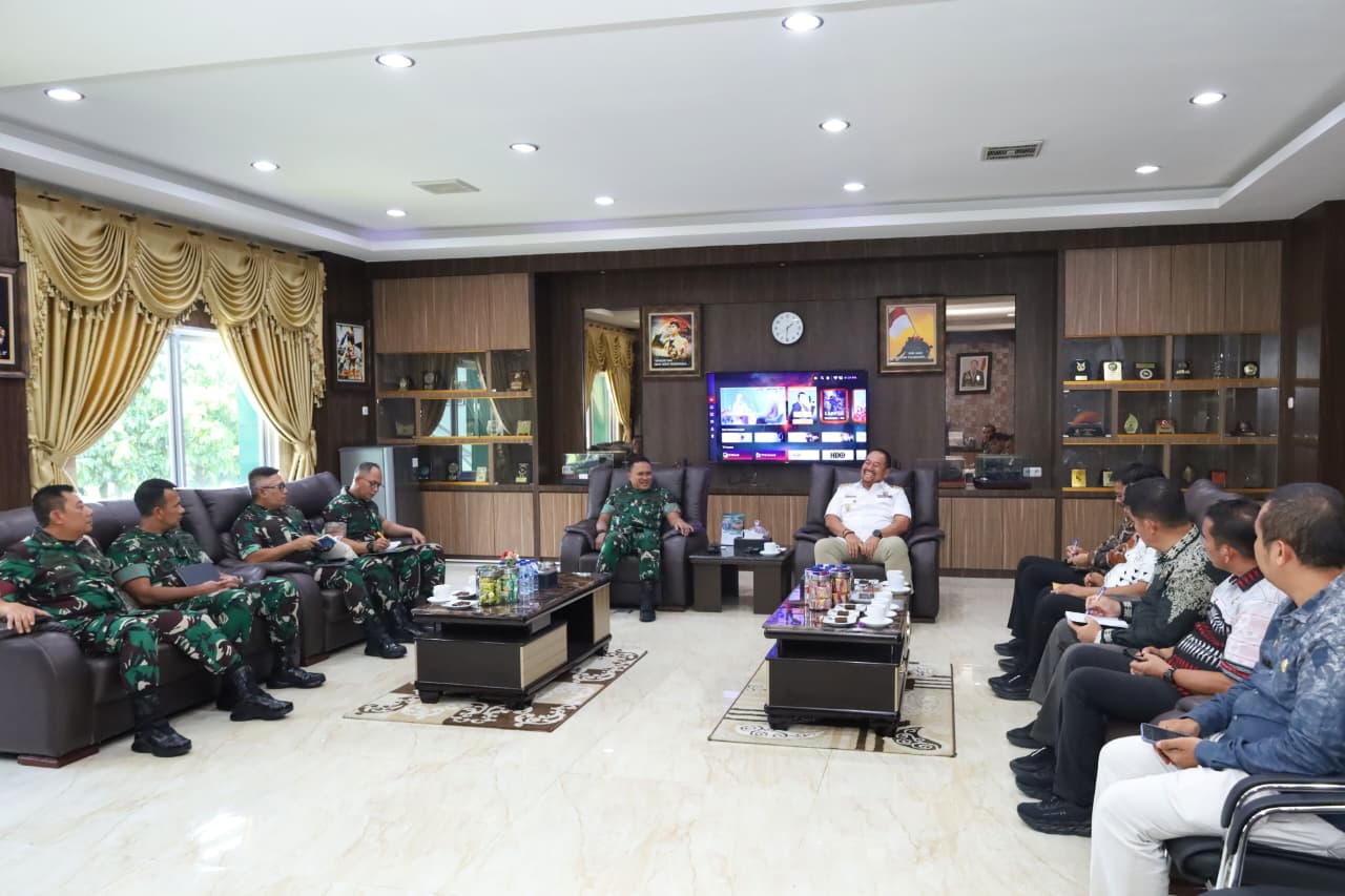 Audiensi ini turut dihadiri oleh jajaran pejabat Kodam l/BB dan Pemkab Batu Bara, antara lain Asintel kasdam l/BB, Asops kasdam l/BB, Aster kasdam l/BB, Asisten Perekonomian dan Pembangunan Drs. Bambang Hadisupraapto, MM, Plt. Kasatpol PP Ronald Farel Siahaan, S.Pd, Plt. Kadis Pendidikan Wali Wala Azahari Sagala, S.Pd, Kabag Pemerintahan Yasser Abdillah, S.STP, serta Kabid Infrastruktur Bappelitbangda Faisal Rahman Nasution, S.T. Pertemuan berlangsung dalam suasana hangat dan penuh semangat kebersamaan, menandai langkah konkret sinergi TNI dan pemerintah daerah dalam mendukung pembangunan nasional dari daerah.