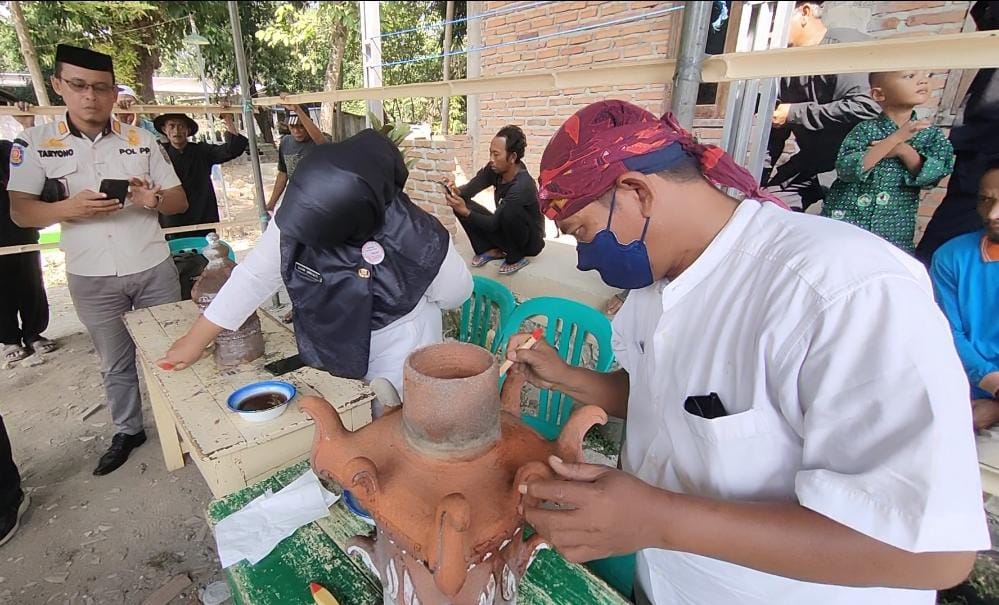 Ketua Tim Ahli Cagar Budaya (TACB) Kabupaten Indramayu Dedy S Musashi SS didampingi Arsitektur Cagar Budaya Nurhidayah ST MT mengapresiasi kepedulian dari bupati Indramayu Hj Nina Agustina SH MH CRA terhadap salah satu tinggalan arkeologi dari masa Islam yang masih dijaga dan dimanfaatkan oleh masyarakat setempat.