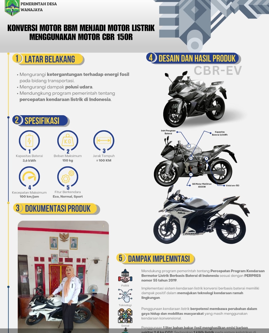 Dia telah mengikuti lomba motor listrik se-Indonesia dan mendapatkan juara 2 se-Indonesia. Prestasi yang didapatkan telah mengharumkan nama baik Desa Wanajaya, dan menjadi putra terbaik Desa Wanajaya.