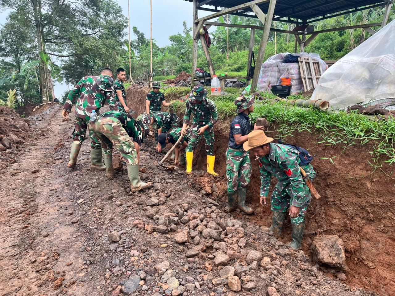 Semangat gotong royong tampak jelas dalam setiap tahapan pekerjaan. Personel TNI bersama masyarakat bahu-membahu menyelesaikan pengerjaan jalan agar dapat segera dimanfaatkan oleh warga.