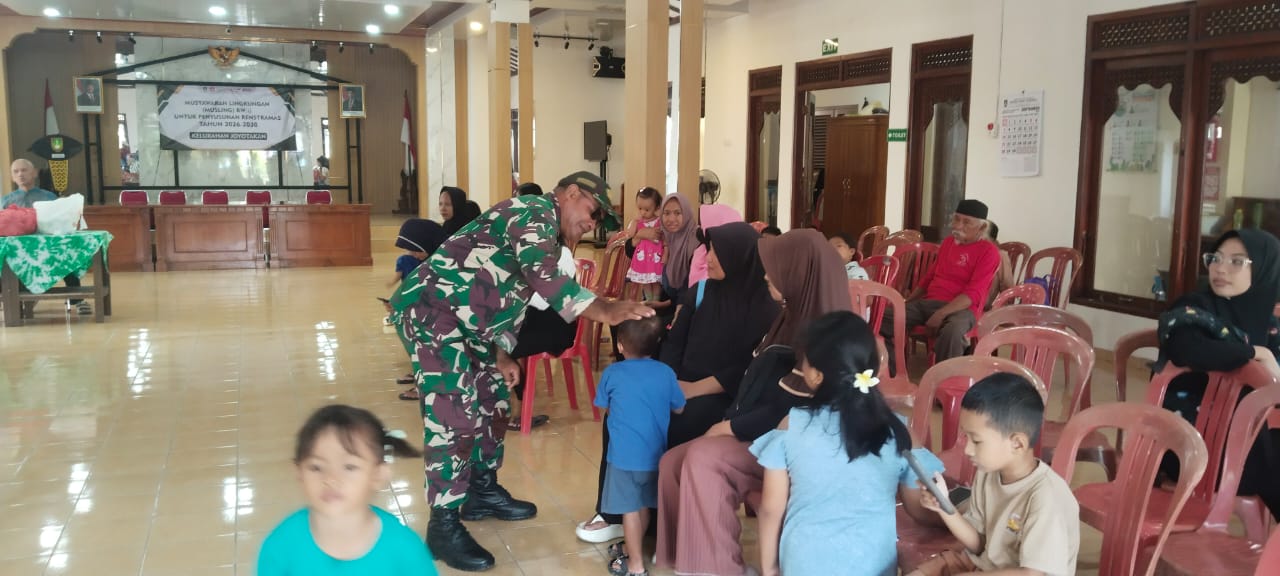 Kegiatan diawali dengan pendaftaran peserta imunisasi balita, dilanjutkan dengan pemeriksaan kesehatan dan pelaksanaan imunisasi oleh tenaga medis Puskesmas Kratonan. Babinsa Serma Rumbawa hadir di lokasi untuk melakukan monitoring sekaligus memastikan kegiatan berlangsung dengan aman, tertib, dan lancar.