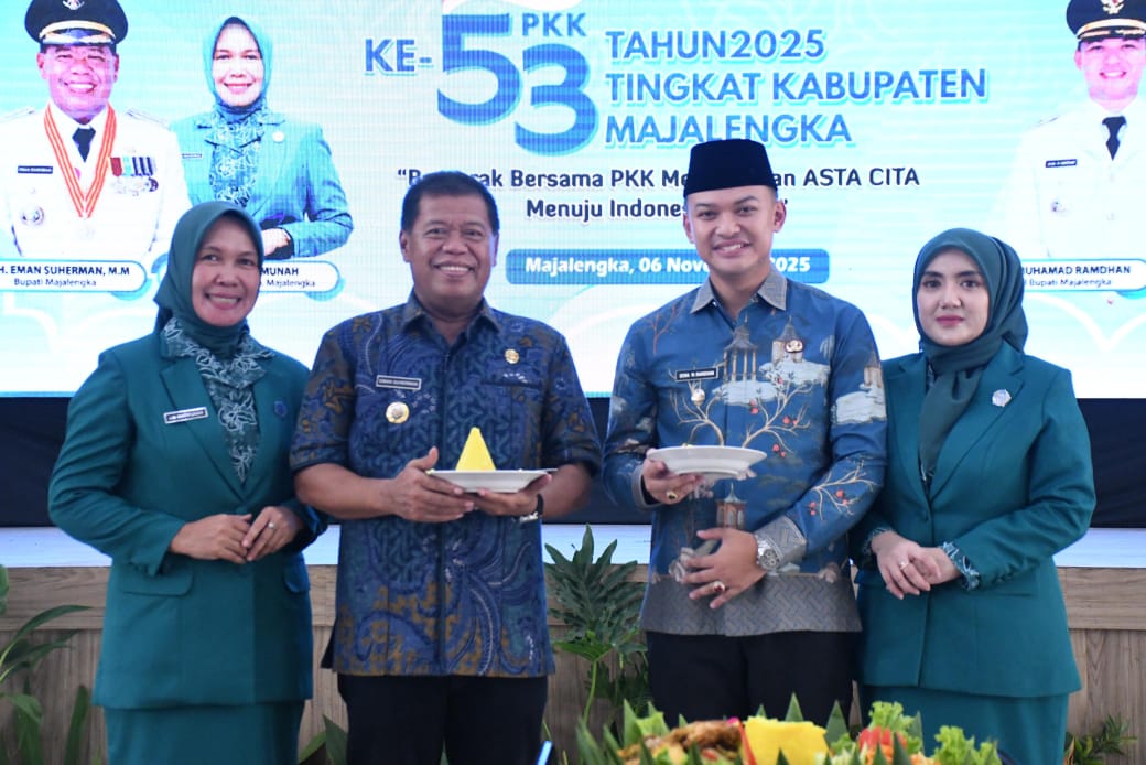 Bupati Majalengka, H. Eman Suherman menyampaikan apresiasi kepada seluruh Kader PKK atas peran aktif dan kemampuan mereka beradaptasi menghadapi berbagai tantangan zaman. Ia berharap momentum HKG Ke-53 dapat memotivasi Kader untuk terus berkarya, berinovasi, serta menjaga ketahanan keluarga di tengah dinamika pembangunan.