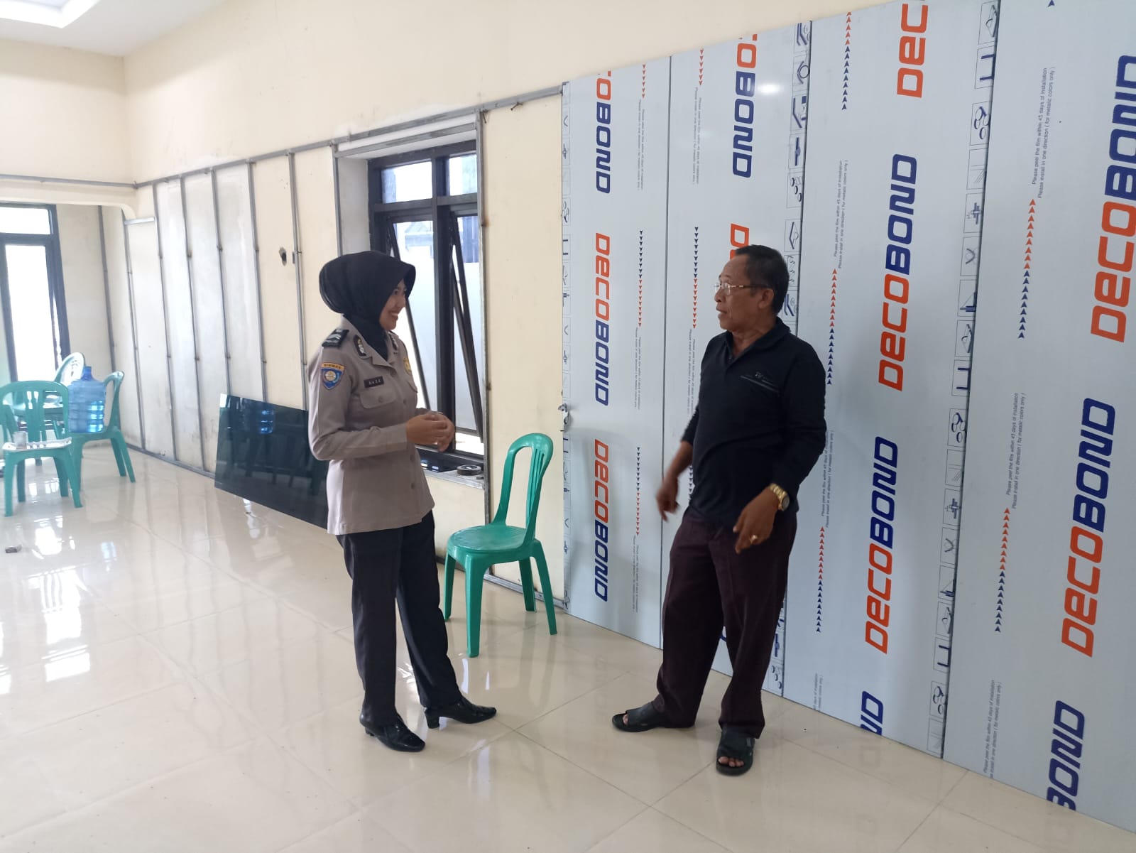 Briptu Nia selaku Bhabinkamtibmas desa Jayi melaksanakan sambang ke Kepala Desa di desa binaan desa Jayi sekaligus monitoring pembangunan desa.