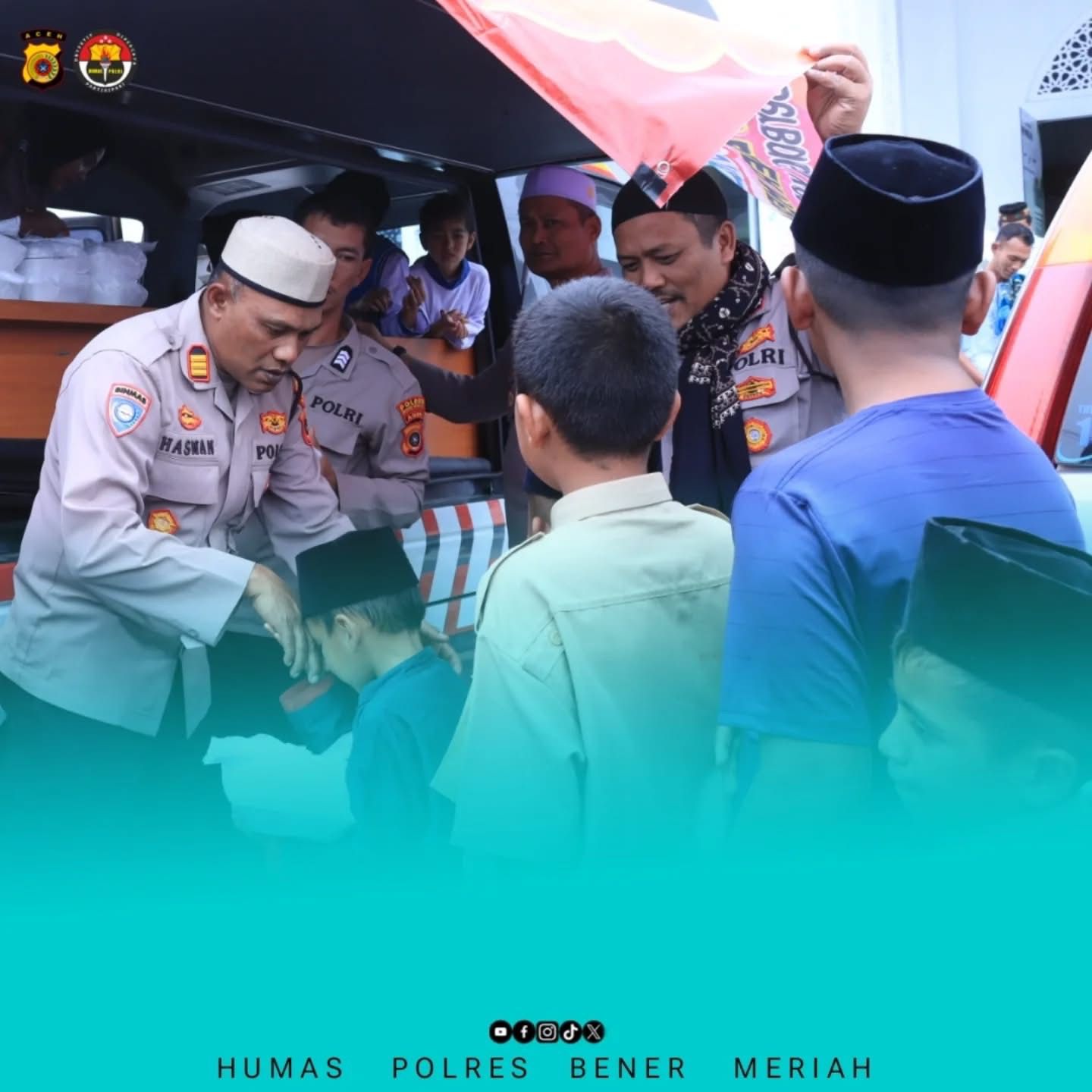 Kegiatan sosial tersebut dipimpin langsung oleh Kapolres Bener Meriah, AKBP Aris Cai Dwi Susanto, bersama para pejabat utama serta personel Polres Bener Meriah. Satu per satu bingkisan diserahkan kepada jemaah yang baru selesai melaksanakan ibadah, menciptakan suasana penuh senyum dan rasa syukur.