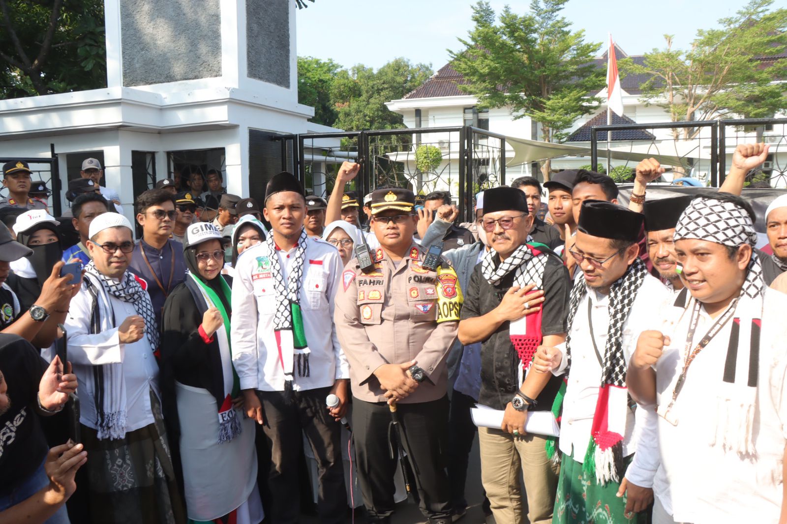 “Tuntutan yang disuarakan oleh massa dalam Aksi Damai yang diorganisir oleh Majelis Gabungan Kabupaten Indramayu adalah hak kebebasan Negara Palestina,” kata IPDA Tasim.