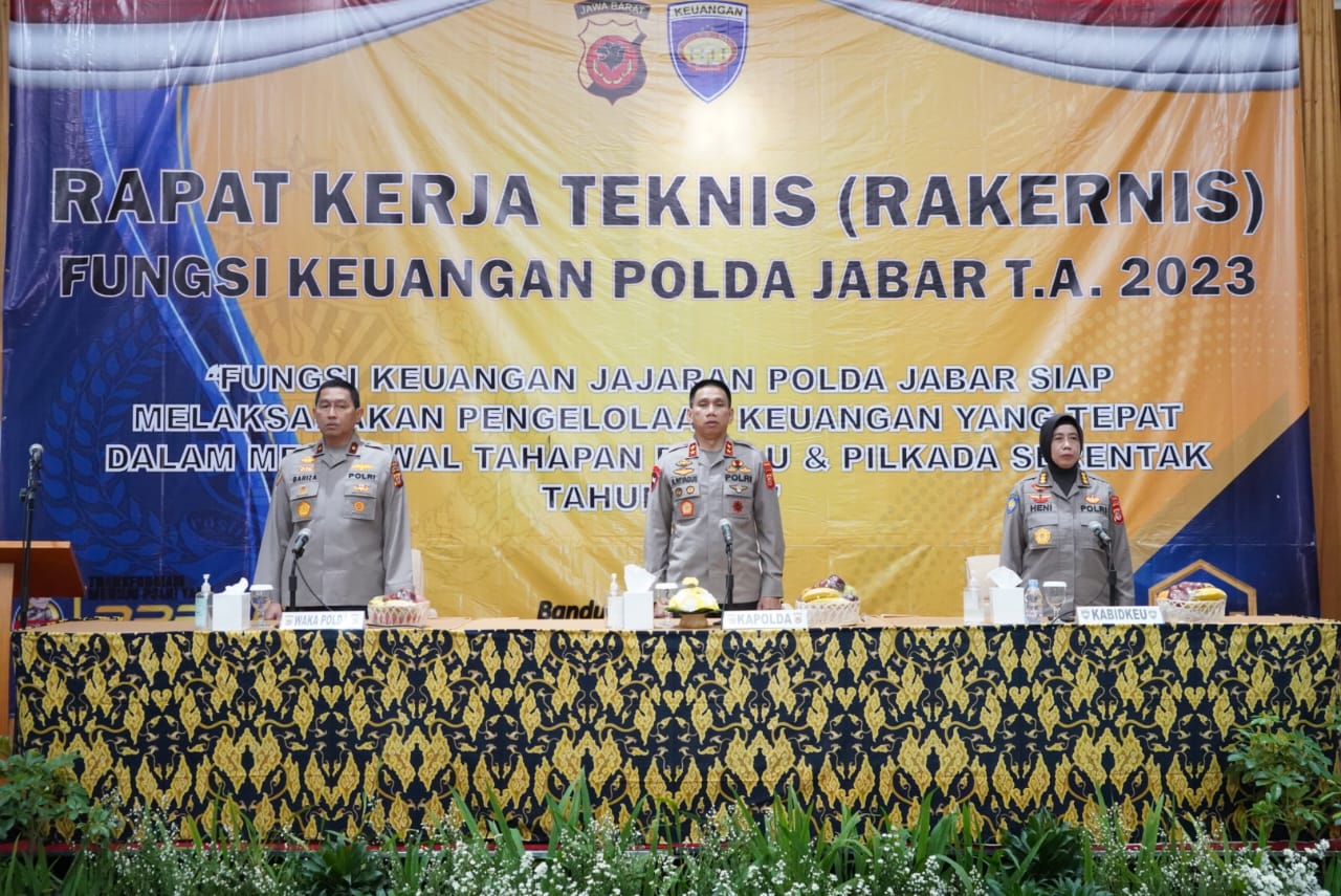 Dalam kegiatan Rakernis Tahun 2023 Fungsi Keuangan Polri T.A. 2023 bertempat di hotel grand Pasundan bandung, Selasa (23/5/2023).