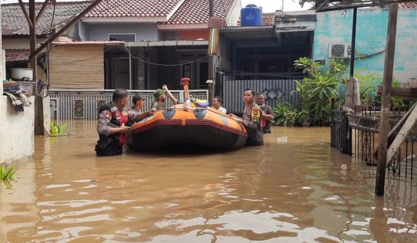 Depok || Corongkita.com – Kapolsek Bojongsari, Kompol Yefta Ruben Hasian Aruan bersama anggota Polsek Bojongsari dan Tim Tagana turun langsung membantu para korban banjir di beberapa lokasi terdampak banjir di Kota Depok.
