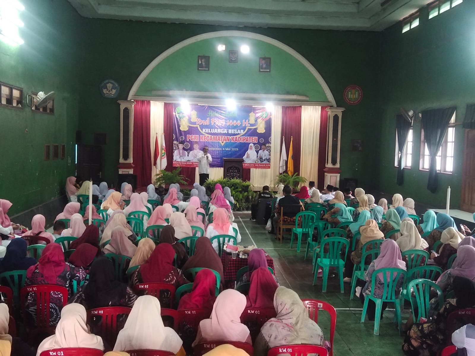 Kegiatan Acara halal bihalal ini diadakan oleh Pengurus PGRI Kecamatan Kadipaten dimana selain itu dihadiri jg oleh Kepala Dinas Pendidikan yang di wakili oleh Kepala Seksi Kelembagaan Nia Sri Wini Arsih, S.E., Ketua PGRI Kab. Majalengka H. Oyo Kartoyo S.Pd., Ketua PGRI Kecamatan Kadipaten Ade Sunardi, S.Pd., Camat Kecamatan Kadipaten H. Sunarto A.Mp. SKM M.Si., Kepala Sekolah TK / SD dan Dewan Guru SE Kecamatan Kadipaten sebanyak 200 orang, dan Tokoh Agama Kec. Kadipaten KH. Gofar Arif Darmawan.