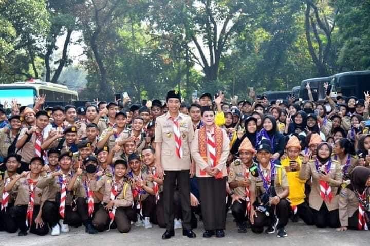 Jakarta || Corongkita.com – Presiden Joko Widodo dan Ibu Iriana Joko Widodo meninjau langsung kegiatan Raimuna Nasional XII Gerakan Pramuka Tahun 2023 yang digelar di Bumi Perkemahan Pramuka Cibubur, Jakarta, pada Selasa, 15 Agustus 2023. Berseragam Pramuka lengkap, Presiden dan Ibu Iriana tiba di lokasi kegiatan sekitar pukul 07.26 WIB.