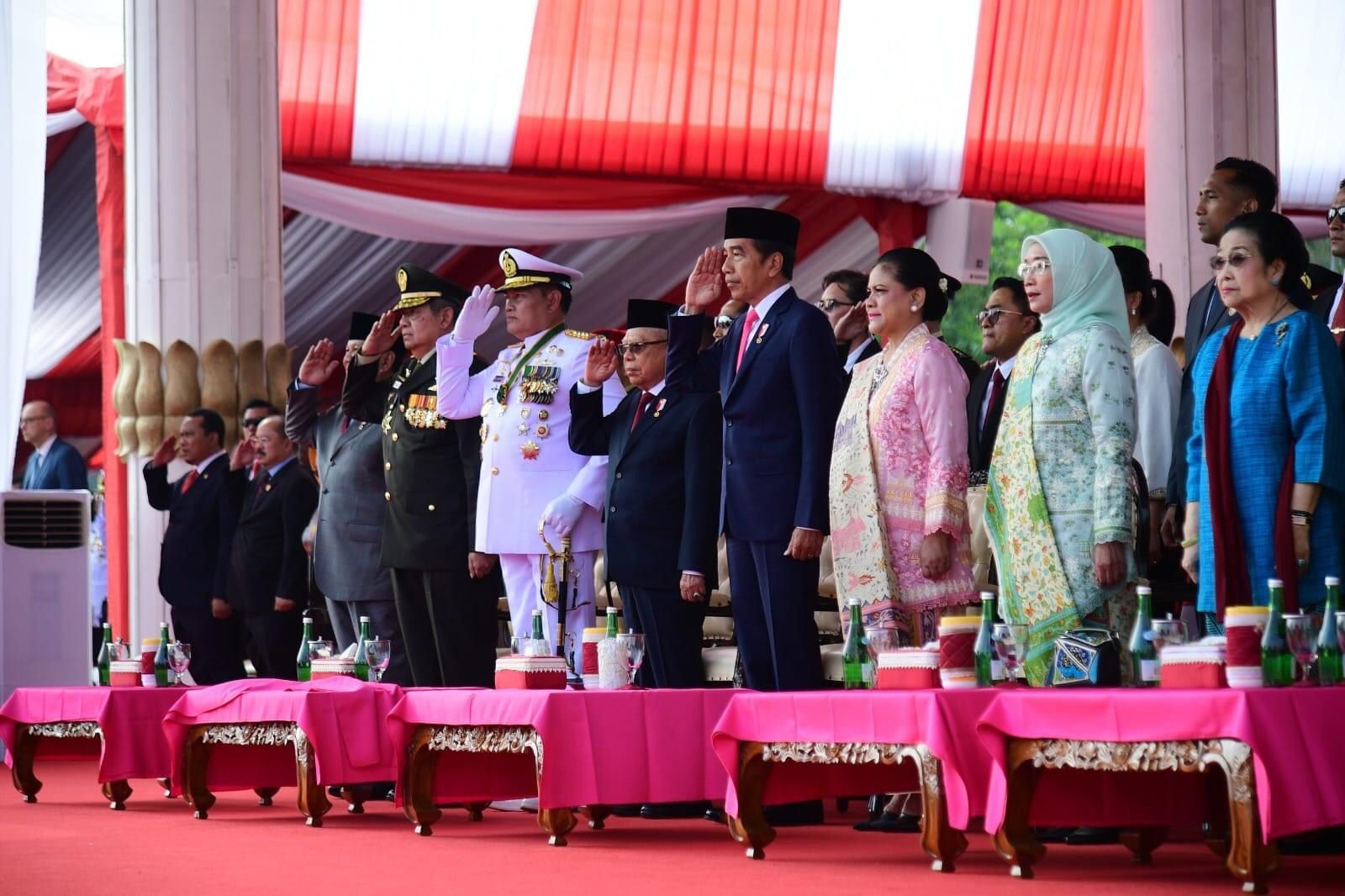 Tampak hadir pula dalam acara tersebut para pimpinan lembaga tinggi negara, para menteri Kabinet Indonesia Maju, dan para duta besar negara sahabat.