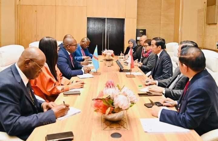Johannesburg || Corongkita.com – Presiden Joko Widodo menggelar pertemuan bilateral dengan Perdana Menteri (PM) Republik Demokratik Kongo Jean-Michel Sama Lukonde di Sandton Convention Centre, Johannesburg, Republik Afrika Selatan, pada Kamis, 24 Agustus 2023. Dalam pertemuannya, Presiden menilai bahwa Indonesia dan Kongo memiliki peluang peningkatan kerja sama dalam mengembangkan nilai ekonomi hutan dan upaya mengatasi perubahan iklim.