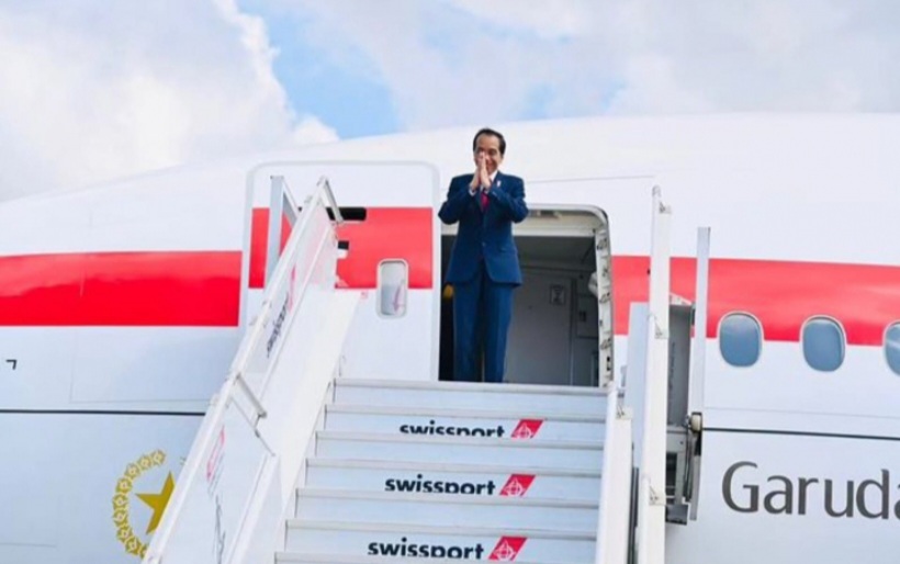 Pesawat Garuda Indonesia (GIA-1) yang membawa Jokowi dan rombongan tiba di Bandara Internasional O.R. Tambo, Johannesburg, pada Rabu (23/8/2023) Sore sekitar pukul 17.00 waktu setempat.