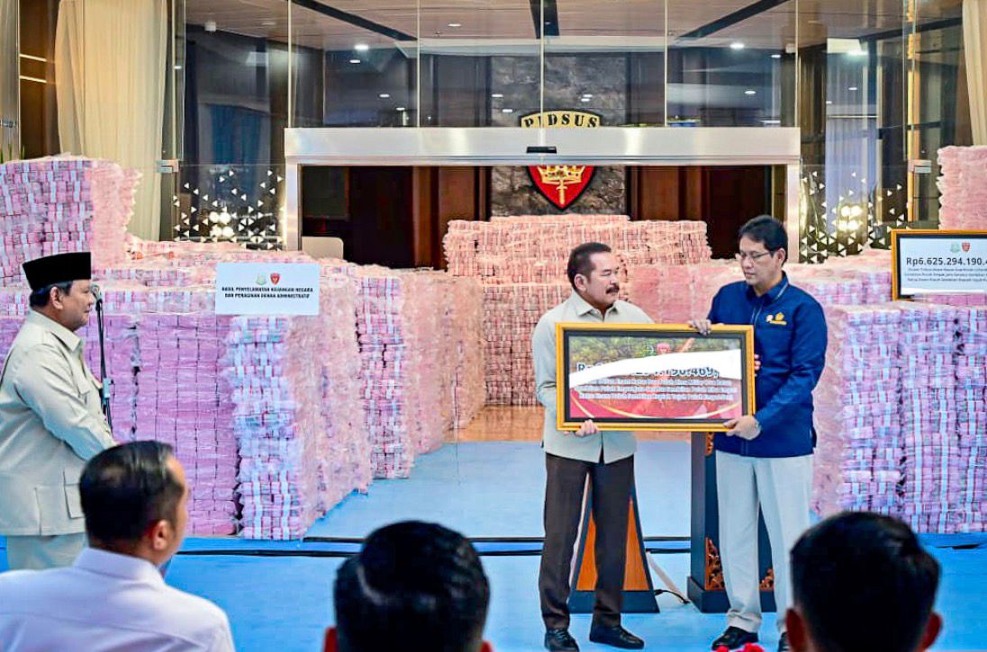 Nilai tersebut berasal dari hasil penagihan denda administratif kehutanan oleh Satgas PKH senilai Rp2.344.965.750.000 yang berasal dari 20 perusahaan sawit dan satu perusahaan tambang nikel, serta hasil penyelamatan keuangan negara atas penanganan perkara tindak pidana korupsi oleh Kejaksaan Agung senilai Rp4.280.328.440.469,74 yang berasal dari perkara dugaan tindak pidana korupsi dalam pemberian fasilitas ekspor crude palm oil (CPO) dan perkara impor gula.