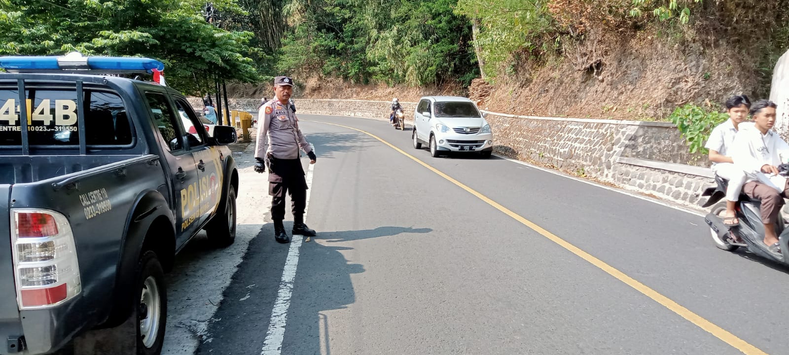 Majalengka || Corongkita.com – Polsek Cikijing Polres Majalengka Polda Jabar, Ps. Panit Samapta lll Aiptu Agus Sri Wandono, S.H melaksanakan kegiatan patroli di jalur rawan laka lantas guna mencegah kecelakaan lalu lintas di Jalan Raya Cikijing-Kuningan tepatnya di Blok Cipadung Desa Sindangpanji, Kecamatan Cikijing, Kabupaten Majalengka, Sabtu (19/08/2023).